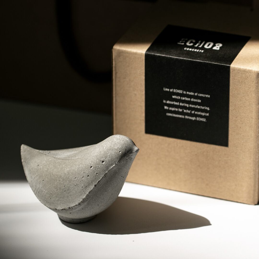 3DCADで設計し、3Dプリンターで製作したシリコン型枠へ二酸化炭素を取り込んだ生コンクリートを流し込んで製作したオリジナル・ハンドメイド小鳥です。